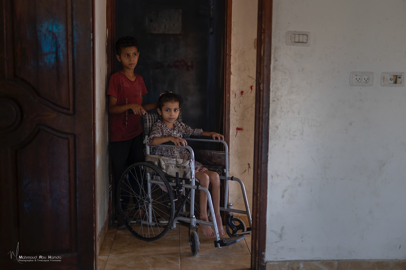 Suhair Sharaf, the child who suffered partial paralysis after a bombing targeted the roof of their home, saw her life  and her family’s  turn into lasting pain and devastation, between the suffering of the body and the weight of the days.